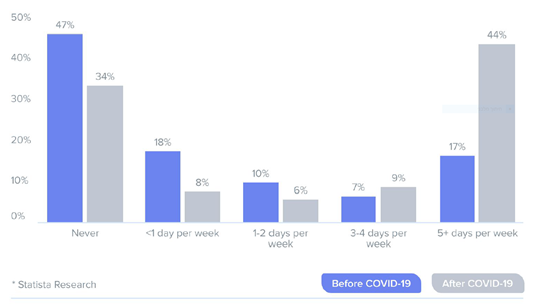 Change in remote work trends due to COVID-19 in US